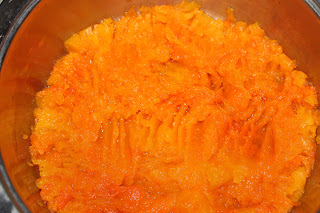 Cocemos la calabaza con agua 15-20 minutos, la escurrimos, la trituramos y la reservamos.