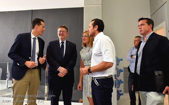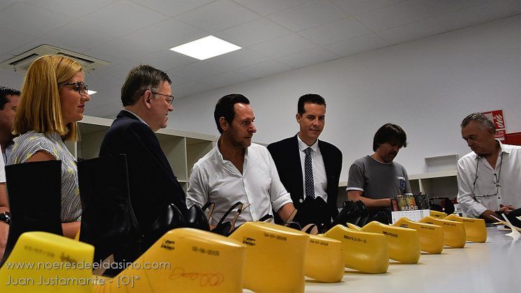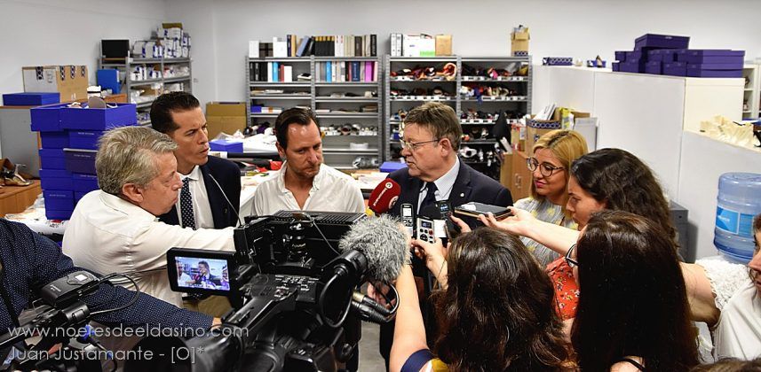 Puig ha estado acompañado por el alcalde de Elda, Rubén Alfaro y la alcaldesa de Petrer, Irene Navarro, así como por ediles de las dos corporaciones, directivos y técnicos de Stuart Weitzman.