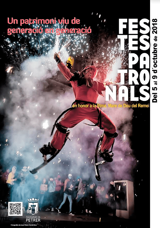 Irene Navarro, alcaldesa de Petrer, ha presentado hoy el cartel anunciador de las Fiestas Patronales en honor a la Virgen del Remedio 2018. Se trata de una imagen del Correfoc, de Juan Pedro Verdú, un momento que para Navarro “representa muy bien la esencia de lo que significa para nosotros y nosotras la tarde del 9 de octubre cada año”.