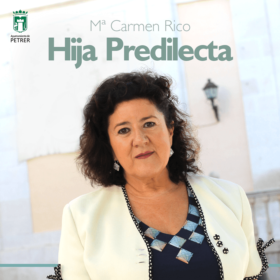 M.ª Carmen Rico se ha convertido hoy en la primera mujer de la historia de Petrer en recibir el título de Hija Predilecta. Hasta entonces solo se ha entregado en tres ocasiones: al militar Carlos Estévez en 1927; al estudioso e investigador local, que precedió como cronista a M.ª Carmen Rico, Hipólito Navarro en el año 1995, cumpliéndose curiosamente este pasado 26 de enero 25 años desde su nombramiento como Hijo Predilecto; y más recientemente, en 2016, al médico Antonio Payá, que falleció el año pasado.