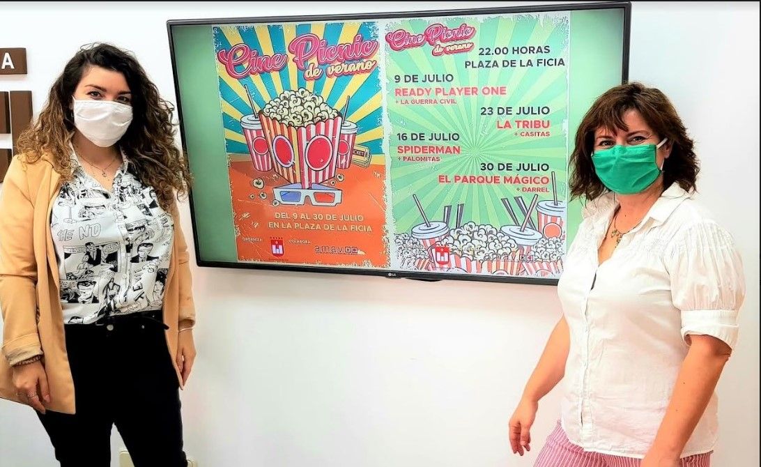 Las concejalas de Juventud, Anabel García, y de Cultura, Rosa Vidal, han presentado hoy la programación de ‘Cine Picnic’, de la que se podrá disfrutar todos los jueves del mes de julio con cita previa. García ha explicado que “las personas interesadas deben contactar a partir del jueves 2 de julio con la Concejalía de Juventud, de lunes a jueves, de 10 a 12 horas, para reservar plaza. Las sesiones se desarrollarán en la Plaza de la Ficia, a partir de las 22.00 horas, cumpliendo todas las normas de seguridad e higiene vigentes en estos momentos”.