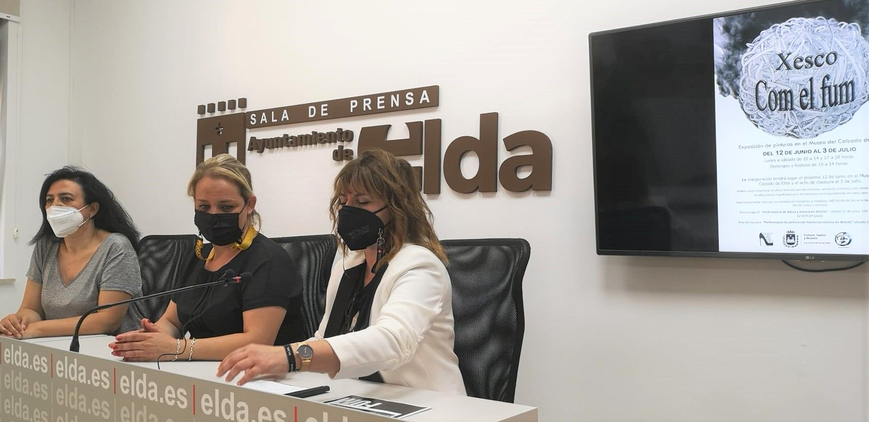 9 de junio de 2021.- El Museo del Calzado de Elda acoge del 12 de junio al 3 de julio la exposición de pintura ‘Com el fum’, que reúne obras del artista valenciano Xesco Máñez. La concejala de Cultura, Rosa Vidal, acompañada de la comisaria de la muestra, María Garrido, ha dado a conocer los detalles de una exposición que, además, incluye la celebración de una ‘performance’ de danza y música en directo en el acto de inauguración y otra ‘performance’ de pintura con humo y música en directo en la clausura.