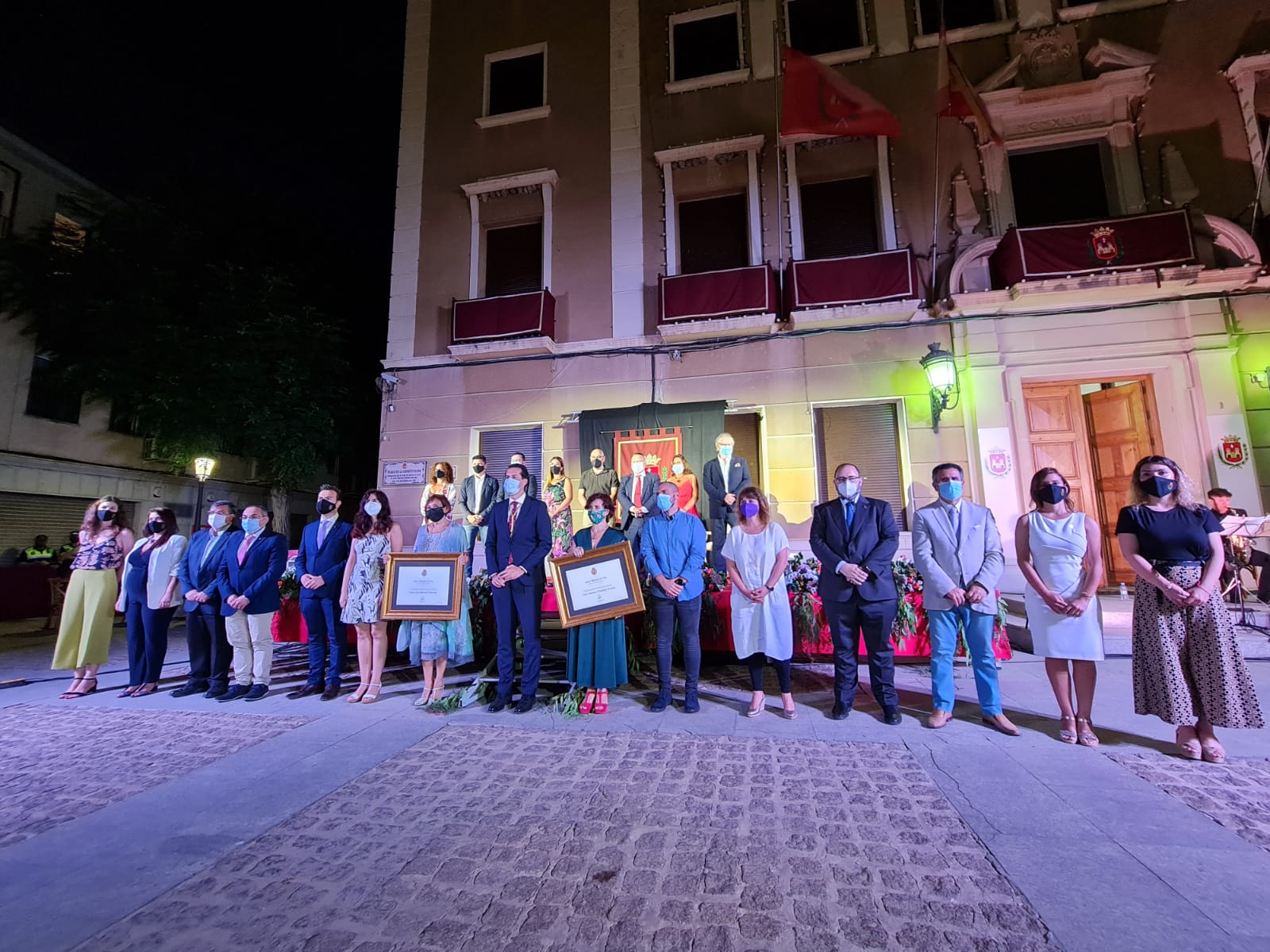29 de julio de 2021.- Elia Barceló y Marta Porpetta, en representación de su padre Antonio Porpetta, han recibido esta noche los títulos de Hija Predilecta e Hijo Predilecto de Elda de manos del alcalde de la ciudad, Rubén Alfaro. El emocionante acto de reconocimiento a la figura de los dos intelectuales eldenses se ha celebrado en la Plaza de la Constitución.