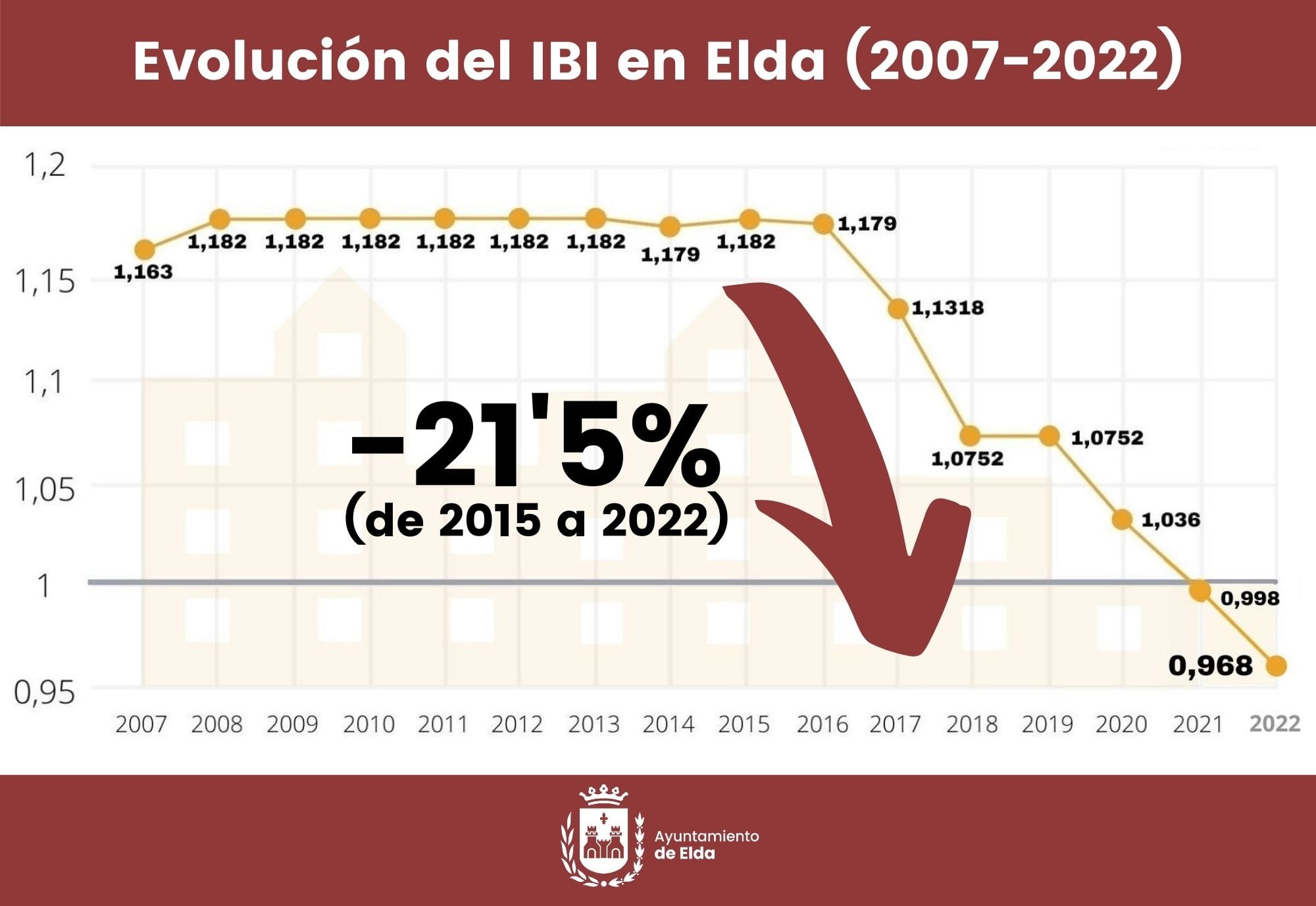 9 de noviembre de 2021.- El alcalde de Elda, Rubén Alfaro, ha anunciado esta mañana una nueva rebaja en el tipo impositivo del Impuesto de Bienes Inmuebles (IBI), que para el ejercicio 2022 se situará en el 0,968%. Esta bajada es la sexta desde 2016 y la reducción acumulada se sitúa ya en el 21,5%. Además, el resto de tasas e impuestos municipales no registrarán ningún incremento.