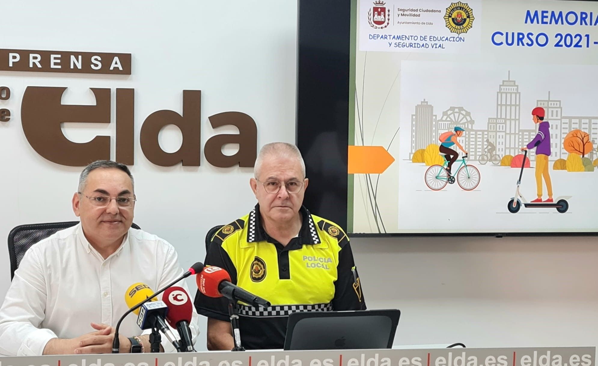 El concejal de Seguridad Ciudadana y Movilidad, Enrique Quílez, junto con el agente responsable de Educación Vial, Ernesto López, han dado a conocer esta mañana la Memoria del curso 2021-22 en la que destaca el incremento de participantes en las diferentes acciones formativas y educativas.