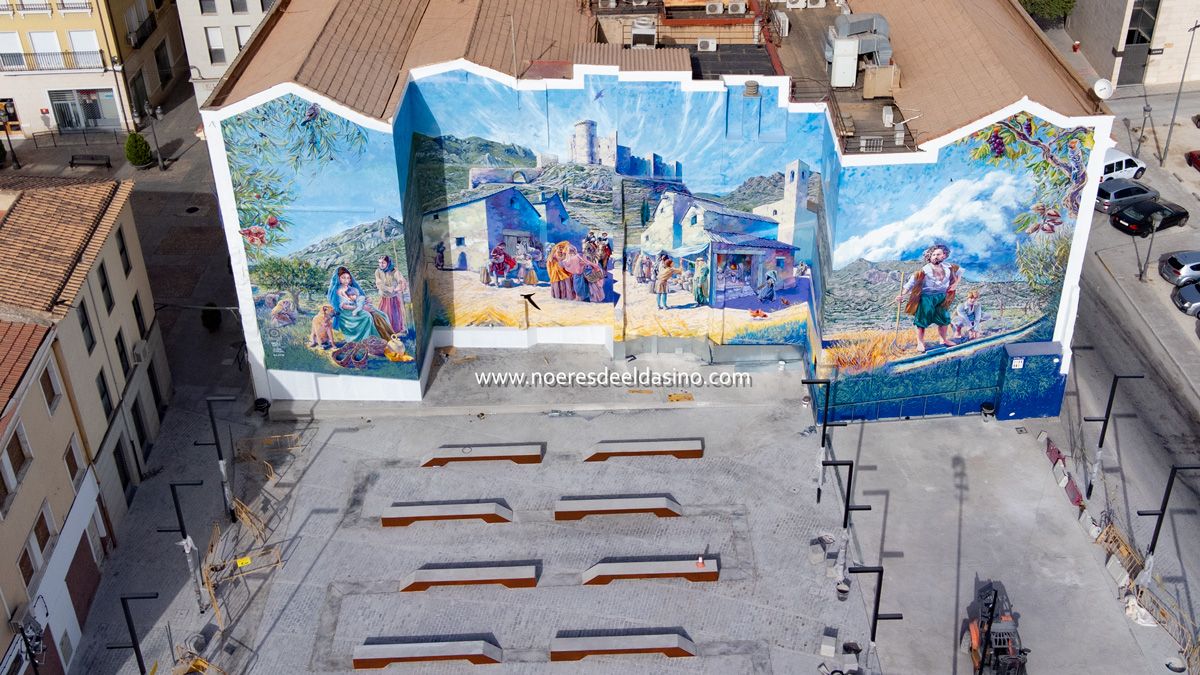 La renovada Plaza de Arriba, uno de los enclaves más emblemáticos del centro histórico de Elda, será abierta mañana por la tarde a toda la ciudadanía eldense. Esta apertura completa un proceso iniciado en diciembre de 2021 desde la Concejalía de Inversiones y Servicios Públicos Sostenibles y permite recuperar y poner en valor un espacio público de unos 1.200 metros cuadrados. Además, la nueva plaza incluye el mural más grande de la provincia de Alicante, obra de Doble 13 y que recrea cómo era este mismo enclave entre los siglos XVI y XVIII.