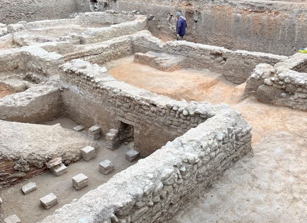 El hallazgo de unas termas romanas de finales del siglo IV en las excavaciones arqueológicas de la plaza de Baix vienen a confirmar la importancia de lo que fue Villa Petraria. “Ponen de relieve la enorme dimensión de lo que fue Villa Petraria ya que son unas termas públicas de una ciudad, que llevan asociadas tres salas decoradas con mosaicos”, ha indicado el concejal de Patrimonio, Fernando Portillo.