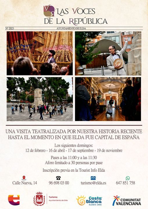 Las visitas, que permiten conocer de la mano de Carasses Teatro los lugares más emblemáticos de la etapa en la que Elda fue capital de España, darán comienzo el próximo domingo y se repetirán en abril, septiembre y noviembre