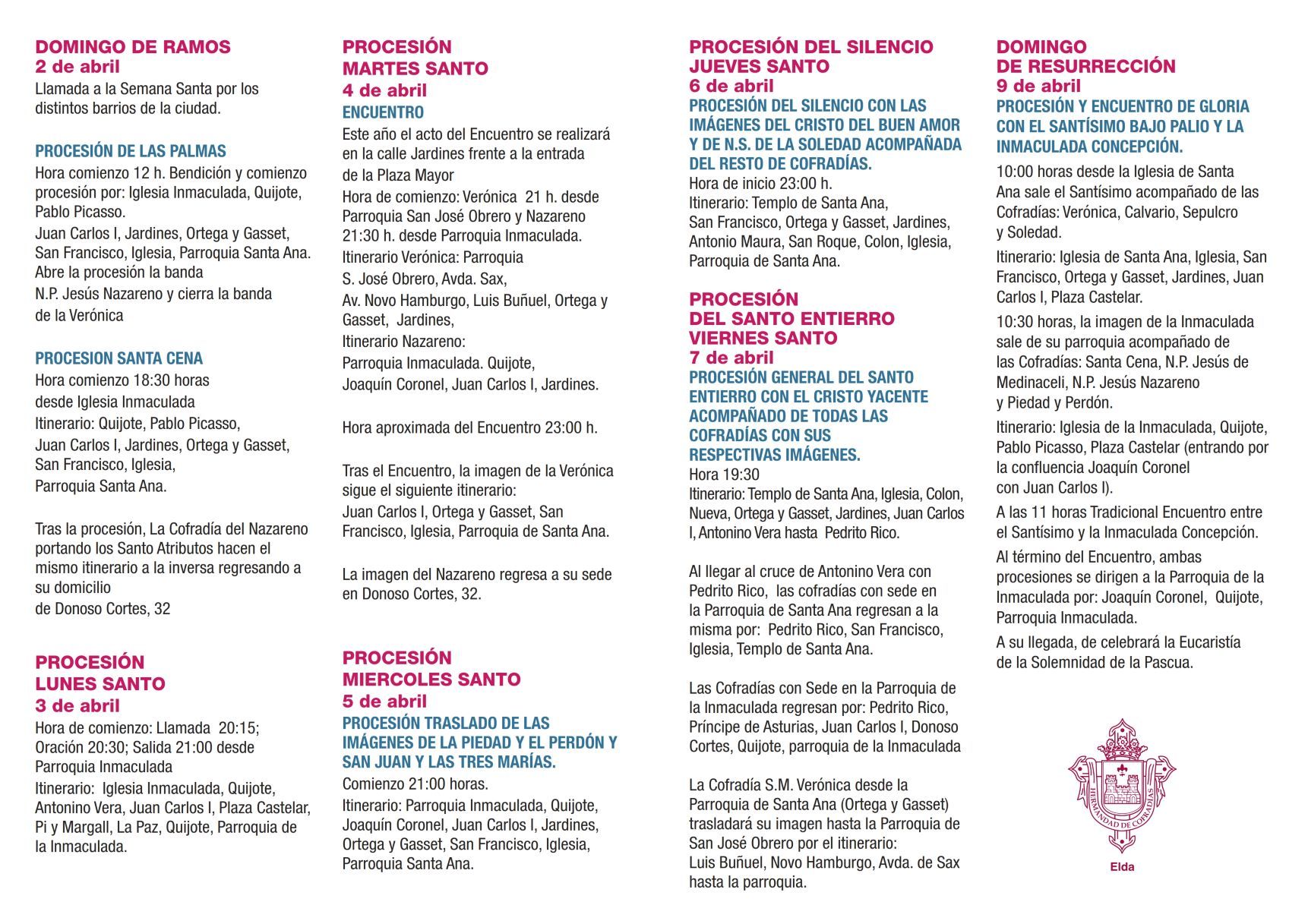 CALENDARIO DE LA SEMANA SANTA ELDENSE