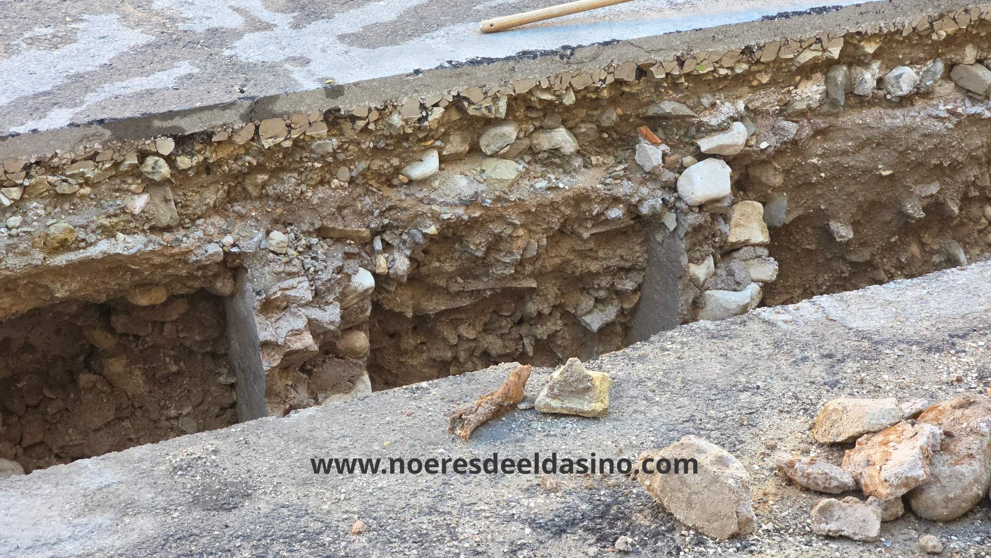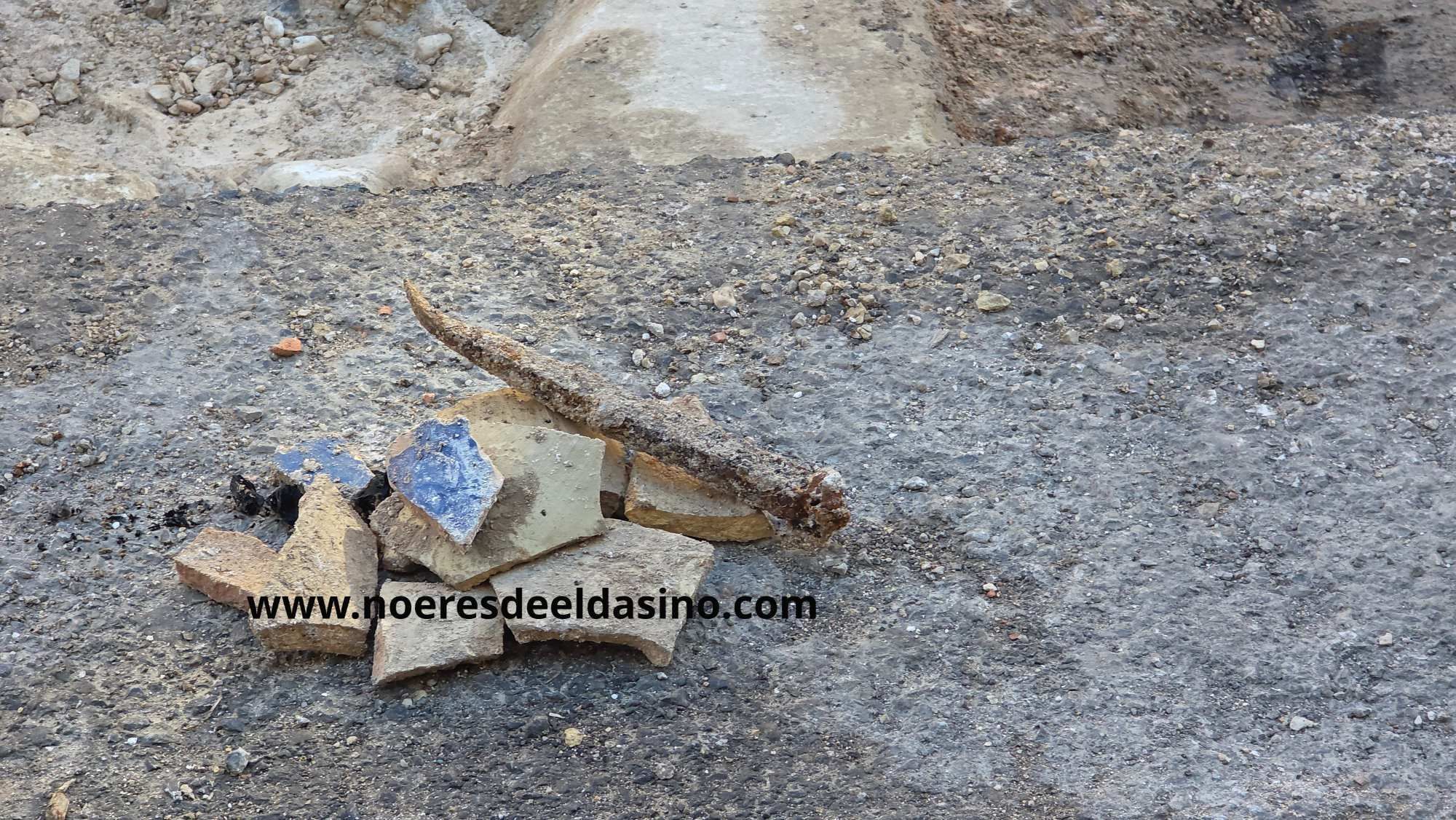 Además, también ha aparecido la tercera boca del refugio de la Guerra Civil, cuya ubicación aproximada se intuía. También se pondrá en valor con algún tipo de cobertura transparente que permitirá ver desde arriba ese tercer acceso. En este sentido, el alcalde de Elda ha agradecido «el cuidado que la empresa adjudicataria está teniendo en todos estos trabajos, porque se extrajeron varios metros cúbicos de tierra y ripios que cubrían dicho acceso. Las obras no se han visto afectados porque, mientras se ha realizado la labor arqueológica, se ha continuado la actuación».
