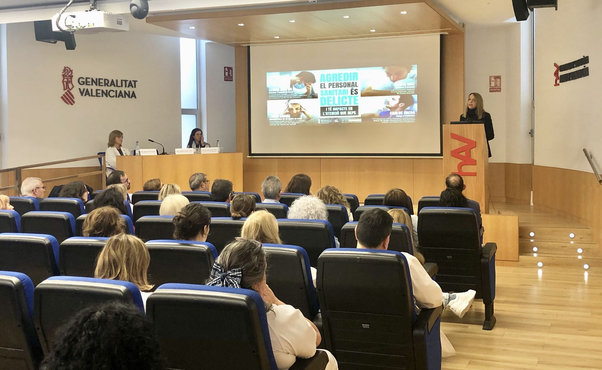 Así se ha manifestado la directora general durante su participación en la Jornada de prevención de agresiones a profesionales del ámbito de la salud, que se ha celebrado en el Hospital Arnau de Vilanova, y que ha contado con la asistencia de la gerente del departamento de salud Arnau-Llíria, Ana Albert. El acto ha comenzado con un minuto de silencio como muestra de la tolerancia cero a cualquier tipo de agreción hacia los profesionales del ámbito sanitario. Cabe destacar además que, con motivo del Día Europeo contra las Agresiones a Médicos y Profesionales Sanitarios, que se conmemora cada 12 de marzo, durante el día de hoy se han organizado 14 jornadas de concienciación sobre este tema en los distintos departamentos de salud.